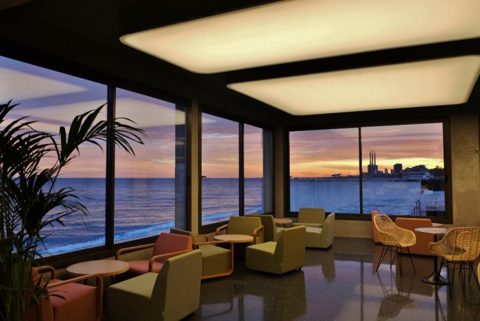 mar, con amplios ventanales y con una variada programación musical y de