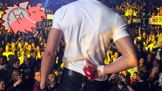 A pesar de recomendarle parar el concierto , demostró ser un profesional : salió al escenario con la mano vendada y continuó hasta el final entregándose al público : cantando, bailando ... y dibujándose con la sangre un corazón en la camiseta .
